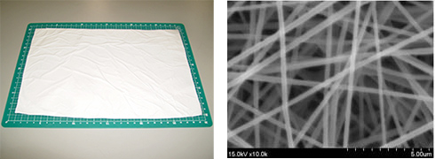 ◇ 柔軟性・薄膜化 不織布シートのため薄くて柔軟性に富み、加工も容易です。